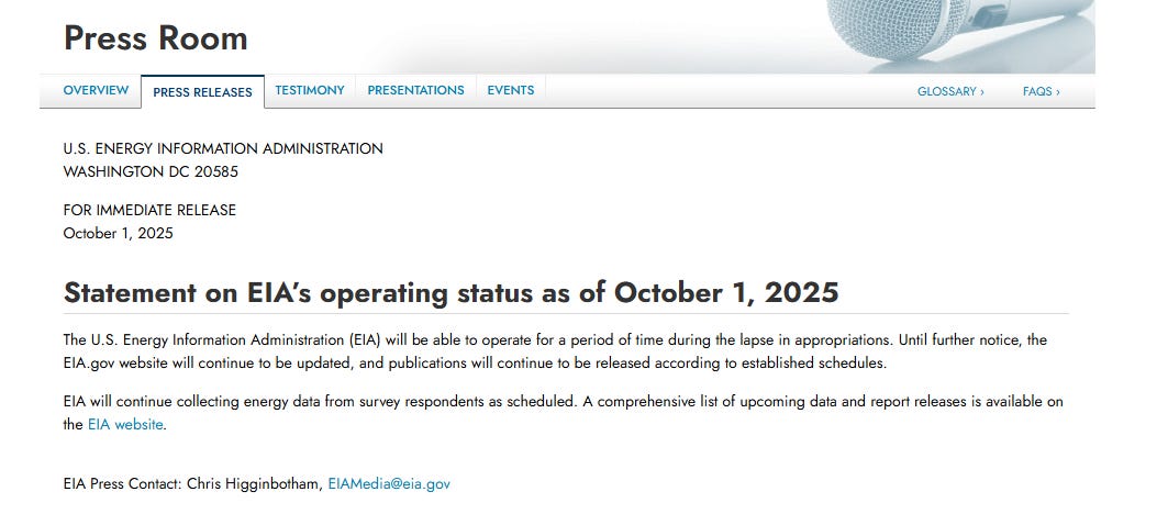 For the record, after his post was published. It was brought to my attention that the EIA production numbers have NOT been affected by the shutdown. Nonetheless there is still some value to the alternative data sources.